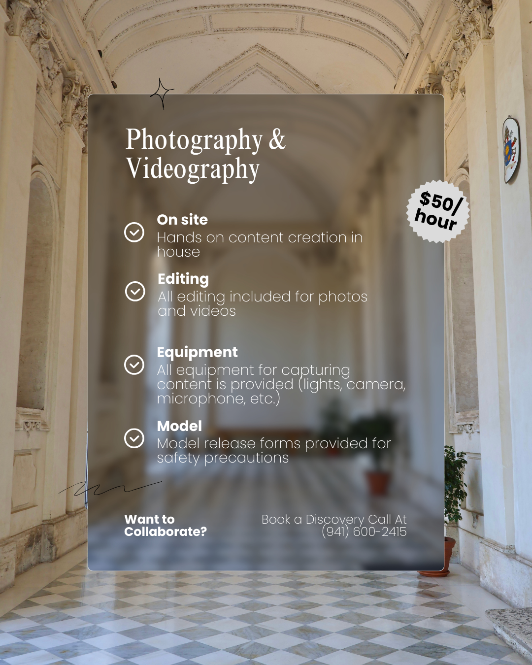 In need of proper brand imaging? This package provides professional photo and video content for everything from website to social media to print and more.